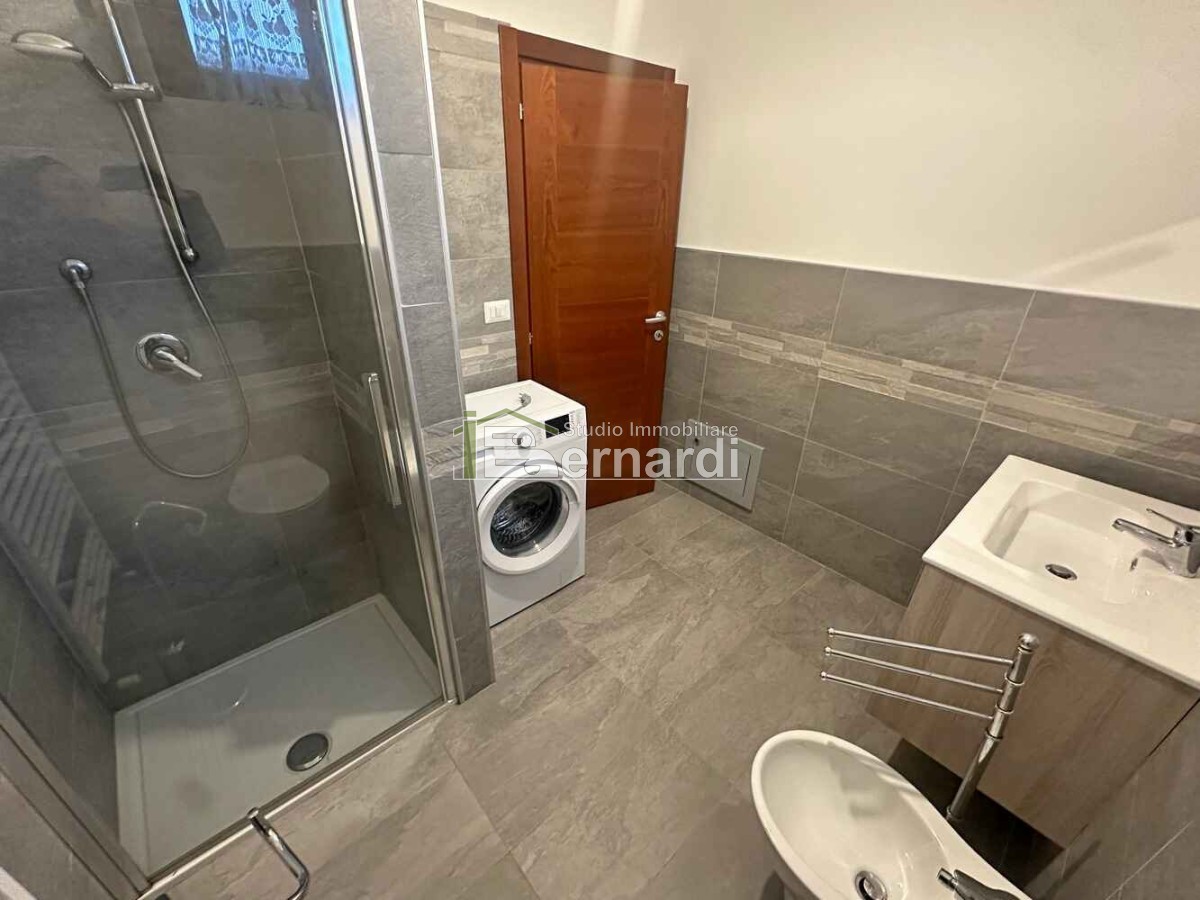 L’ingresso si apre su un comodo disimpegno, che funge da elemento di distribuzione dei vari ambienti della casa. Da qui si accede alla zona notte, composta da due camere da letto e al bagno finestrato, completo di doccia e lavatrice.