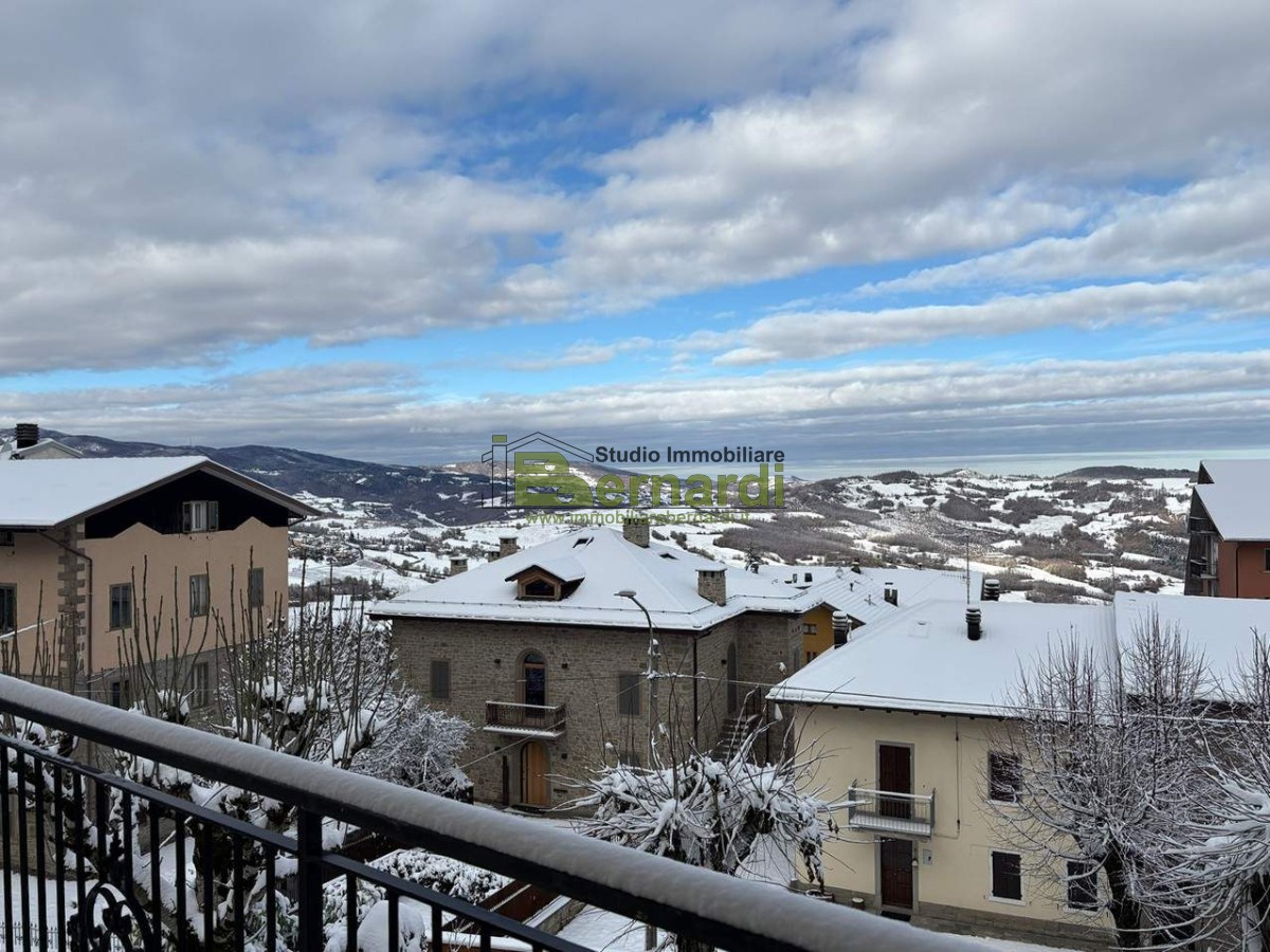 L’appartamento è ben rifinito, presenta nuova pavimentazione, al suo interno dispone di due grandi camere matrimoniali, di cui una con balcone panoramico affacciato sulla vallata circostante e su Piazza Passerini,