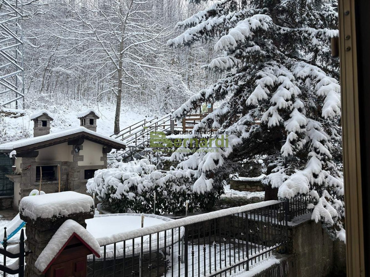 Si accede all'immobile da una rampa di scale sul retro, l'ingresso si affaccia su verdi prati verdi in estate e ricoperti di neve in inverno, con vista sulla pista rossa che collega Pian del Falco a Sestola.