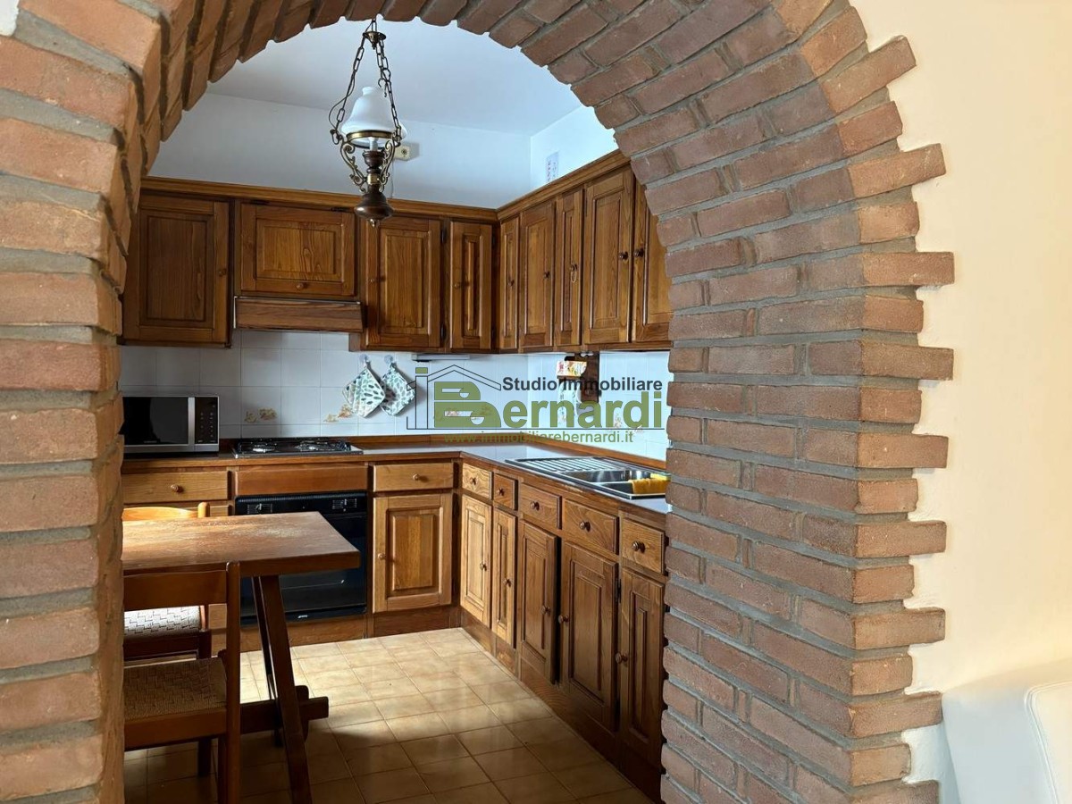 la zona giorno è costituita da pranzo più soggiorno con camino in muratura e cucina abitabile in legno, bagno con doccia.