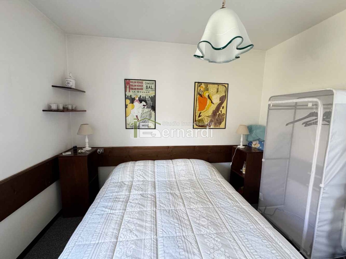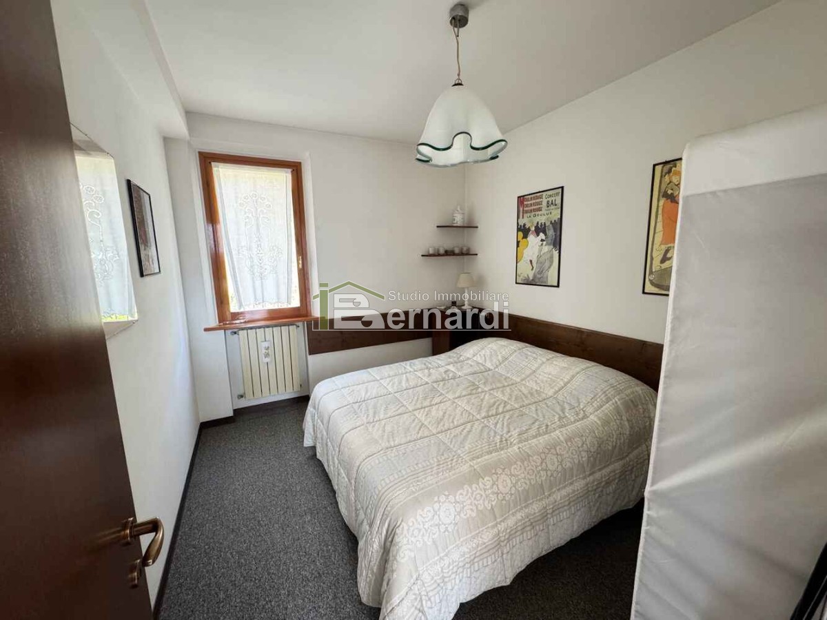 Entrando nell'appartamento ci accoglie la zona giorno composta da cucina a vista, zona pranzo attrezzata con funzionale tavolo allungabile e zona relax valorizzata da camino in classico stile montano. La luminosità è ottima grazie ad un'ampia finestra e ad una porta finestra che conduce ad un funzionale terrazzino collegato ad una delle due camere matrimoniali arredata con bell'armadio a muro con ante e cassetti in legno massiccio. Da un corridoio frontale all'ingresso raggiungiamo anche la seconda camera, il bagno finestrato con doccia ed un secondo balcone panoramico con affaccio sul crinale.