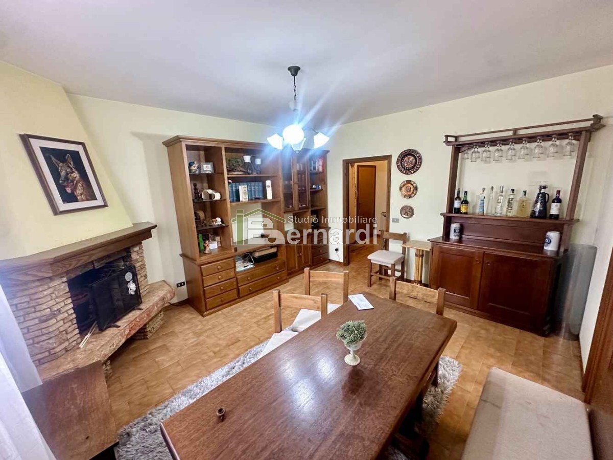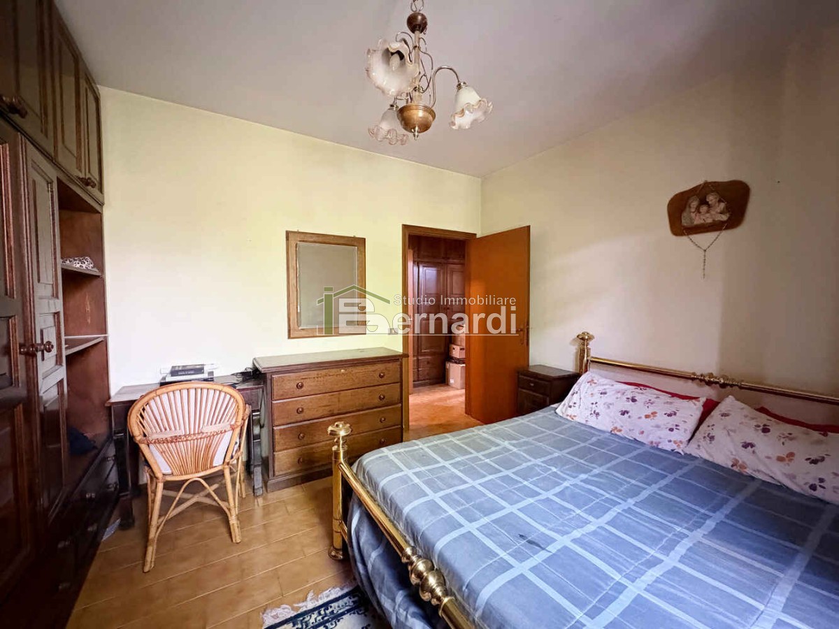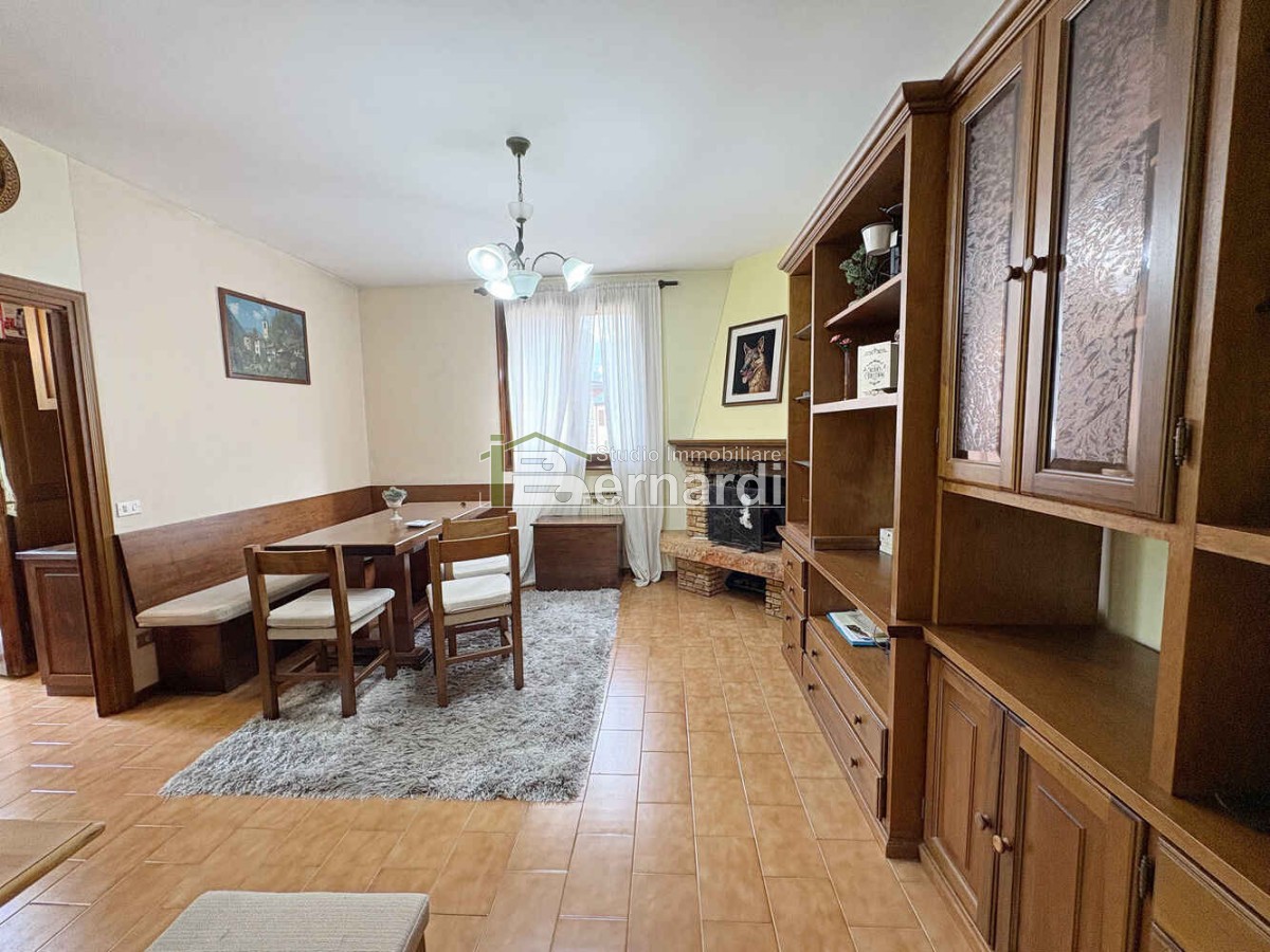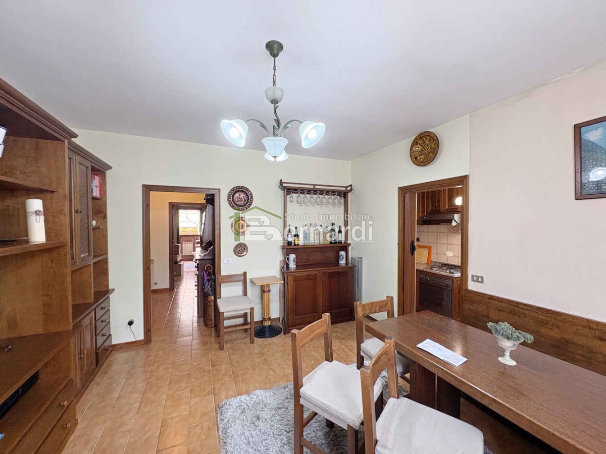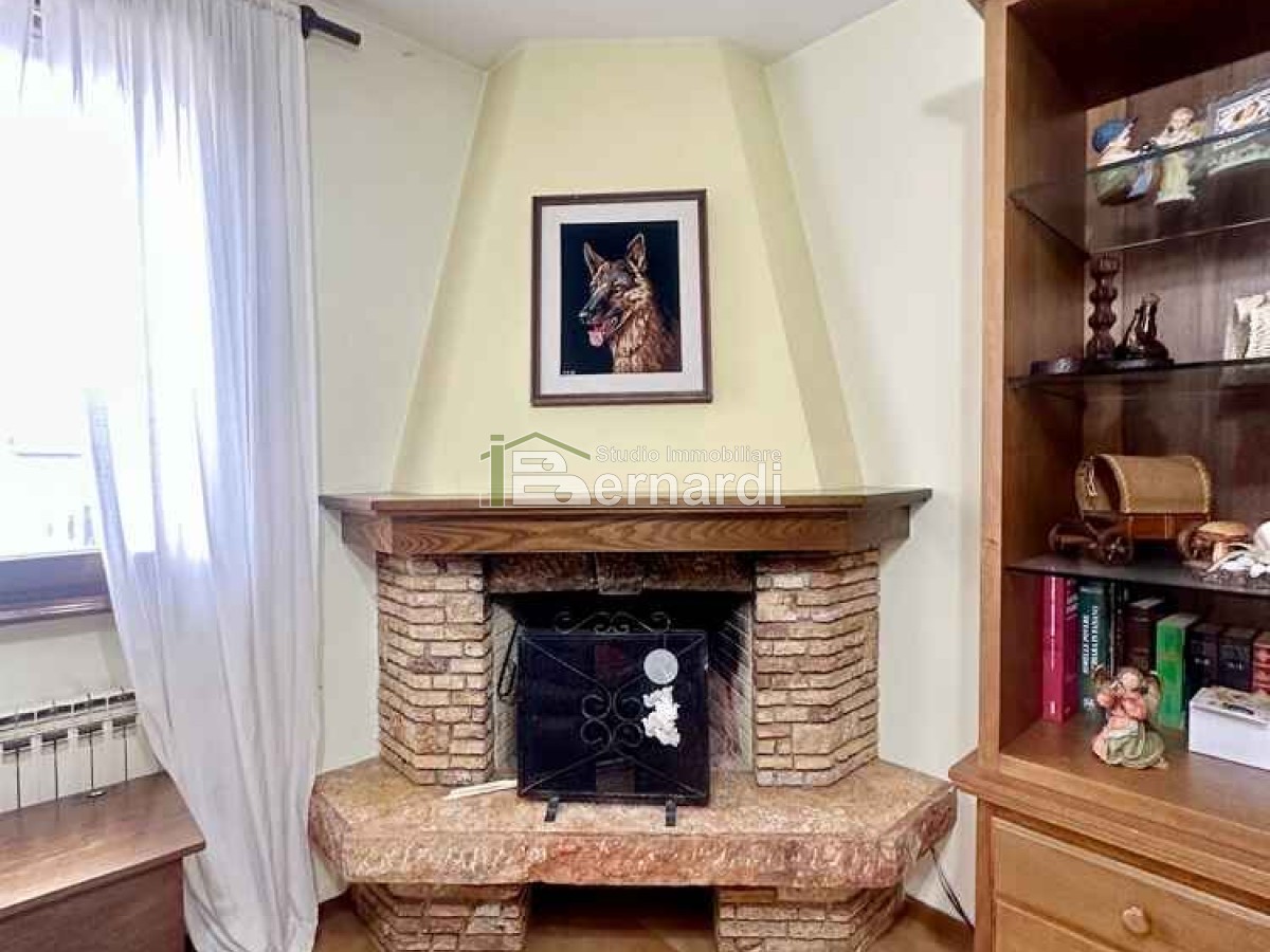 Entrando, un disimpegno ci conduce ad un ampio e luminoso soggiorno caratterizzato da camino in muratura elemento che dona calore e carattere all’ambiente. La zona giorno è completata da un cucinotto funzionale, dotato di porta-finestra con accesso diretto al balcone. Un corridoio conduce alla zona notte, dove troviamo due camere matrimoniali e un bagno finestrato con doccia e vano per la lavatrice.