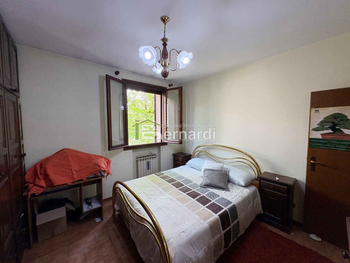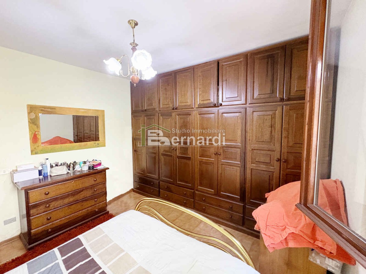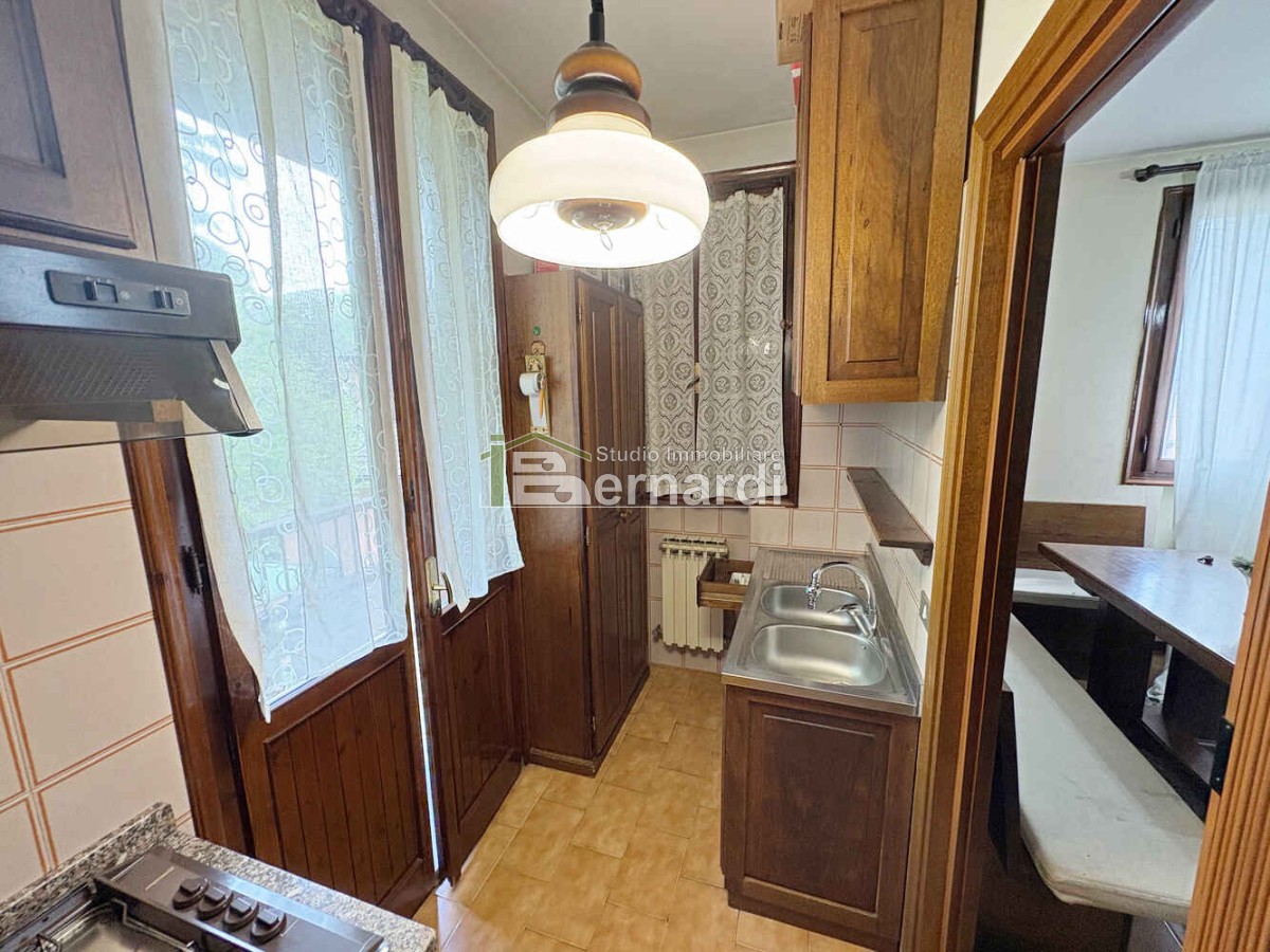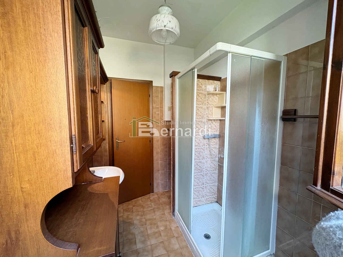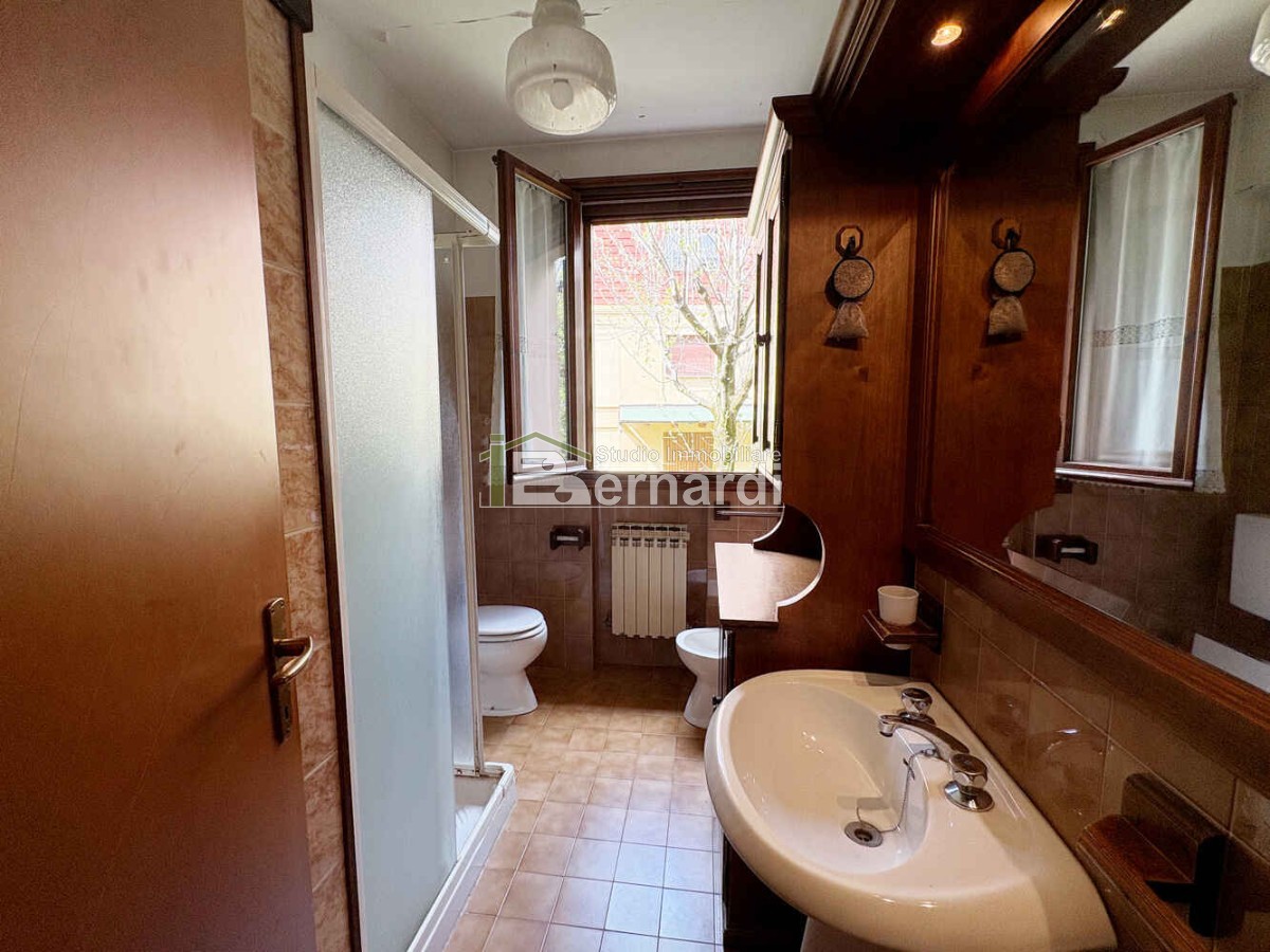 Entrando, un disimpegno ci conduce ad un ampio e luminoso soggiorno caratterizzato da camino in muratura elemento che dona calore e carattere all’ambiente. La zona giorno è completata da un cucinotto funzionale, dotato di porta-finestra con accesso diretto al balcone. Un corridoio conduce alla zona notte, dove troviamo due camere matrimoniali e un bagno finestrato con doccia e vano per la lavatrice.
