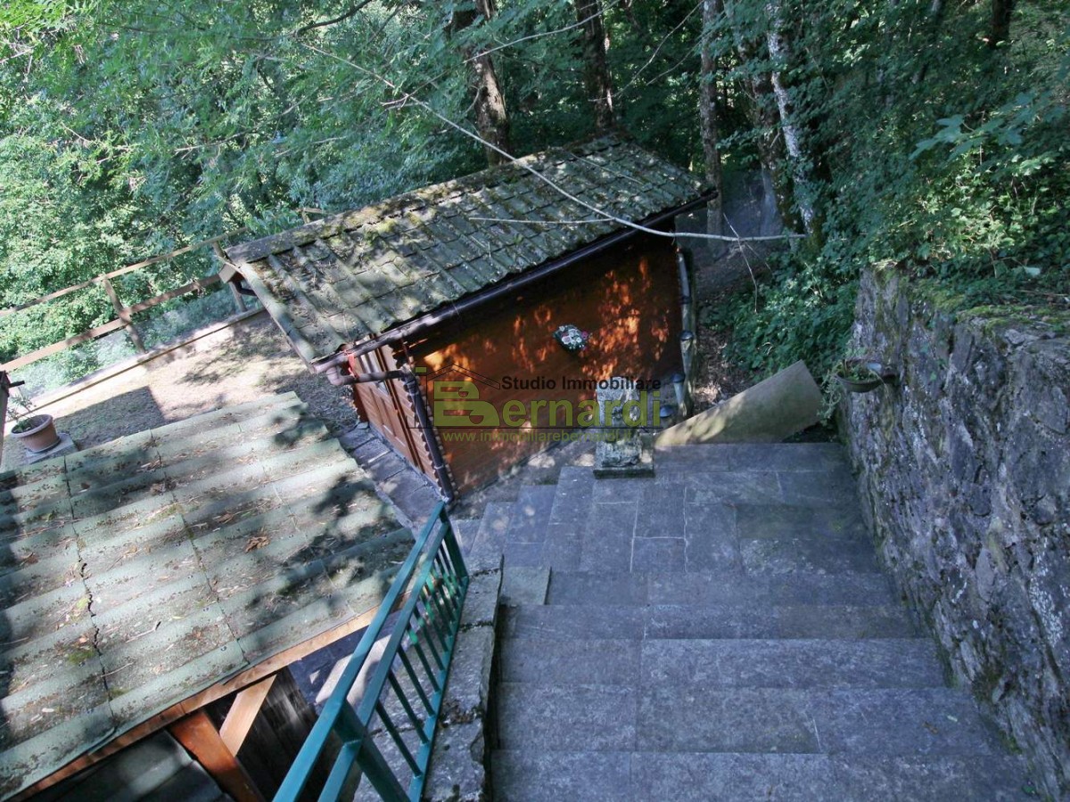 Terreno: completano la proprietà circa 2.000 metri di terreno boschivo situato al di sotto del giardino, da cui si accede direttamente tramite un cancello pedonale oppure da un passaggio carrabile dal fondo.