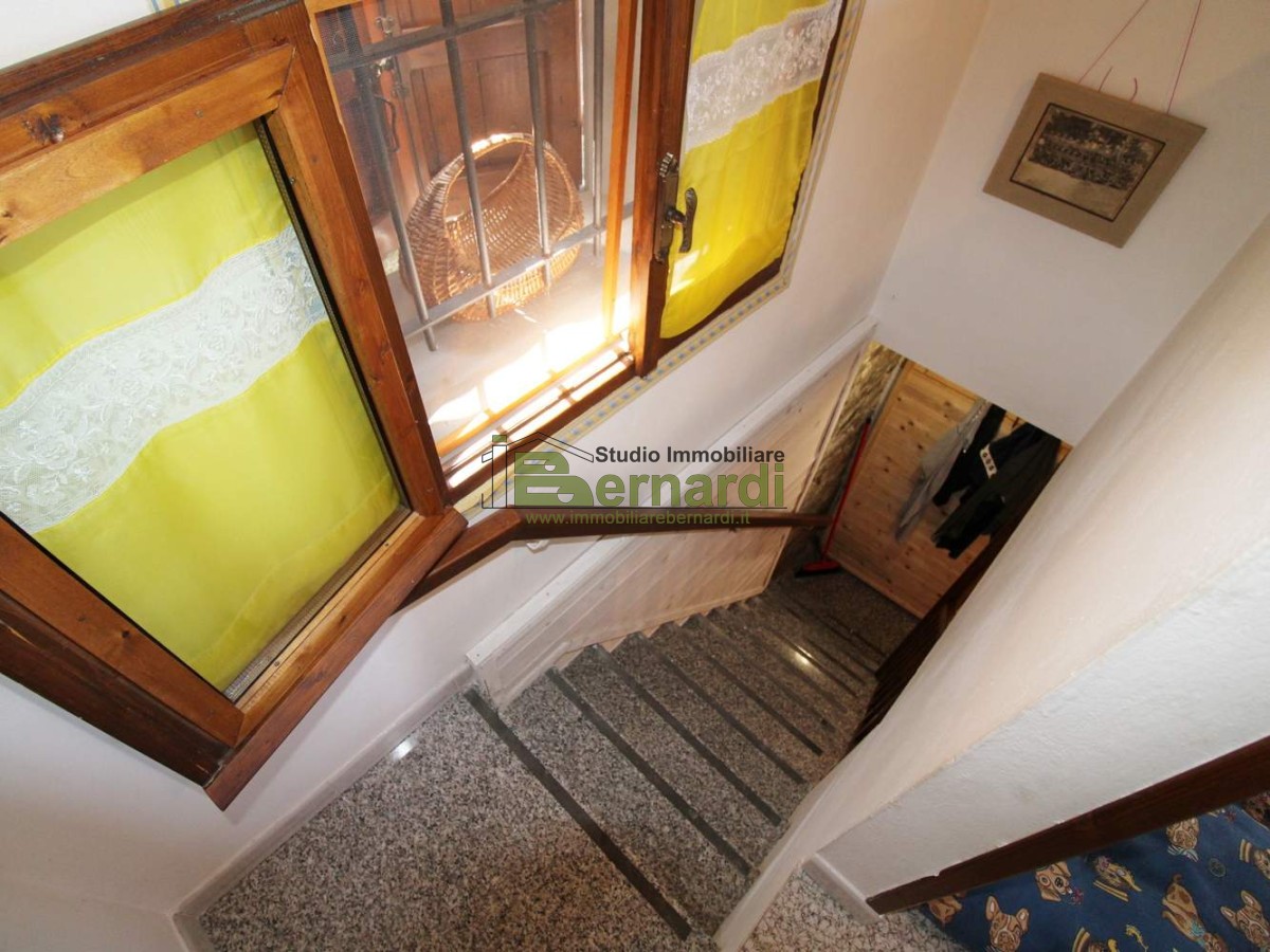 L’immobile è disposto su due livelli e collegato da una scala interna in legno: