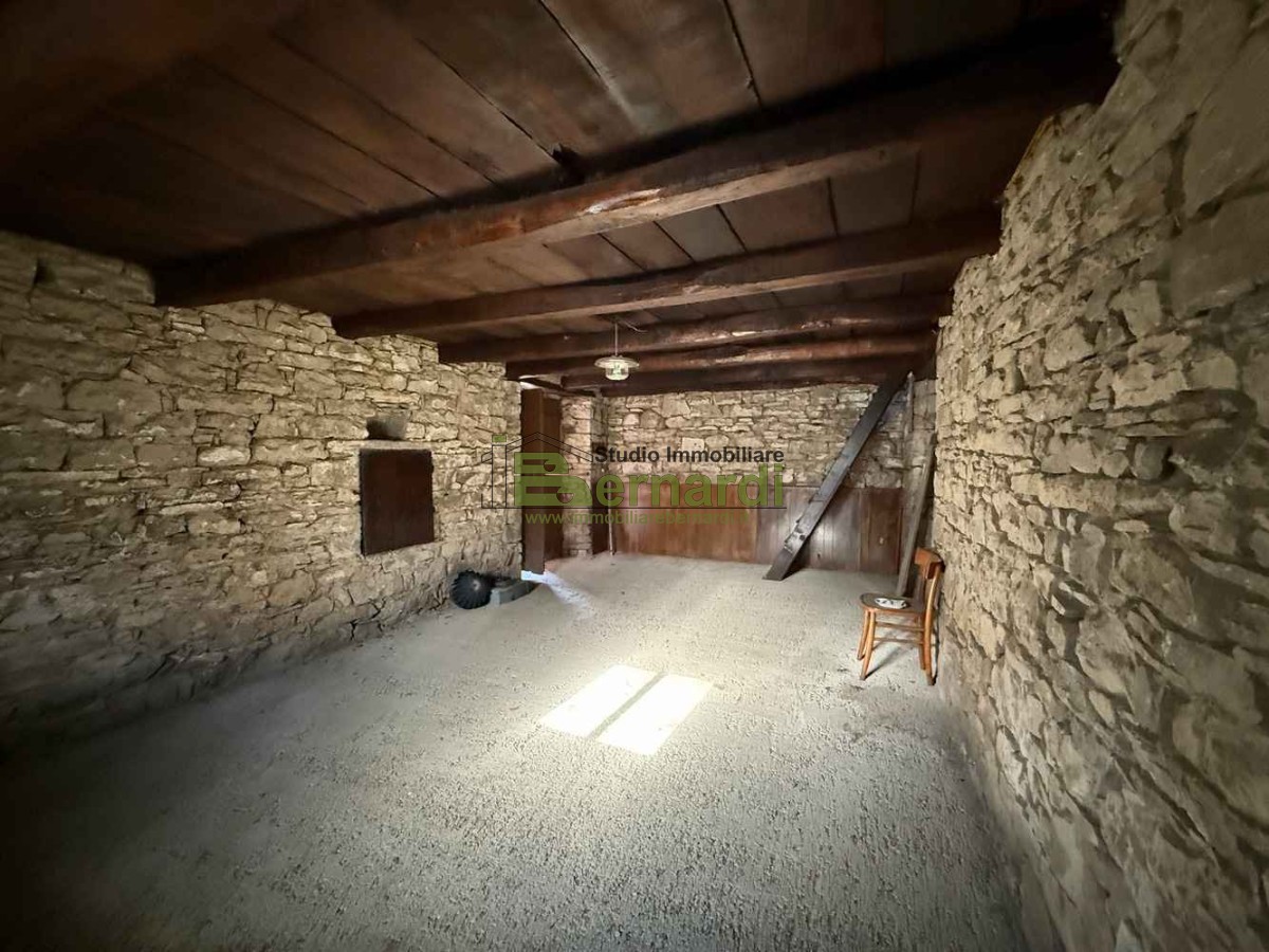 Il fabbricato, realizzato con pietre locali e travi in legno, si sviluppa su due livelli ed è composto da tre locali attualmente utilizzati come depositi e legnaie.