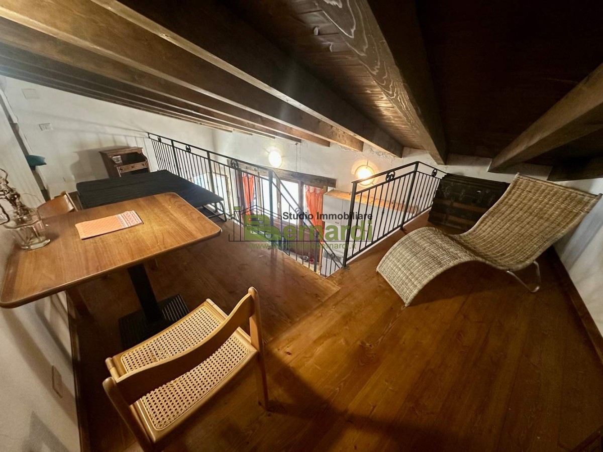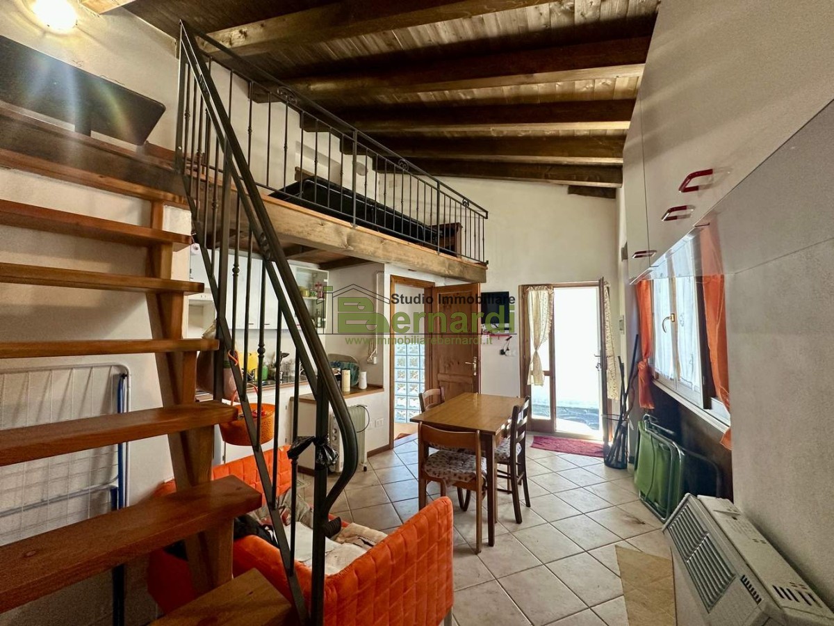 Dal soggiorno è possibile raggiungere: il comodo soppalco attraverso una scala in legno massiccio rifinita con ringhiera in ferro battuto e, da un'ulteriore vano scala separato da porta, il piano seminterrato adibito a tavernetta dotata di secondo piano cottura, zona pranzo, bagno/lavanderia e letto.