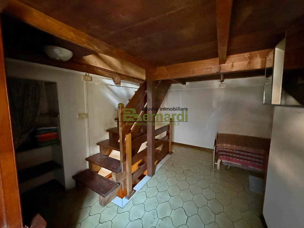 Entrando da un curato lastricato recintato arricchito da aiuola, ci accoglie la zona giorno con angolo cottura e camino/stufa. Salendo una scala in legno giungiamo al primo piano composto da camera e bagno finestrato, mentre il secondo piano ospita una seconda camera più ampia e riservata.