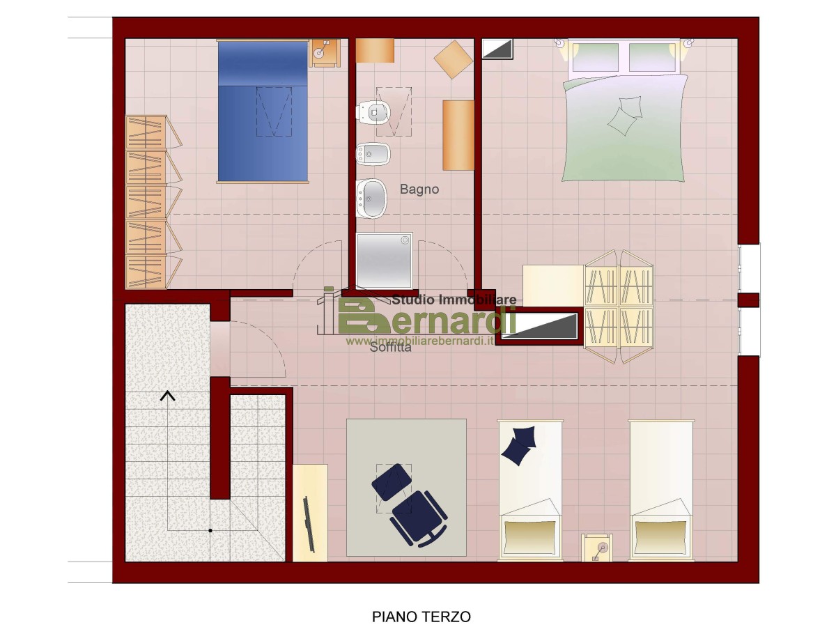 Completa la proprietà una spaziosa mansarda al piano terzo sottotetto di circa 35 mq, collegata internamente all'appartamento, dove troviamo un ampio spazio polivalente, una camera singola e un bagno;