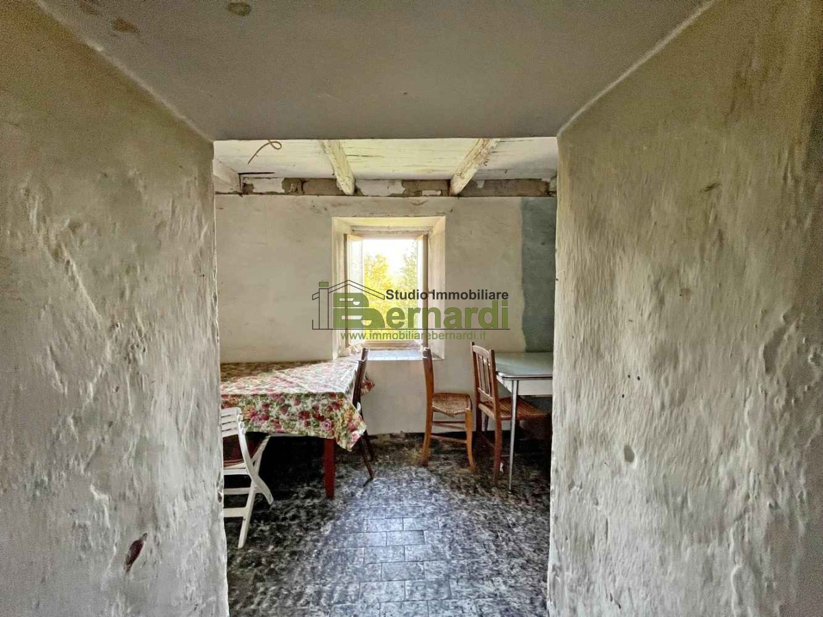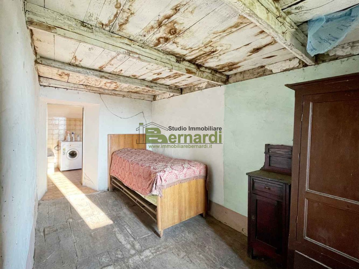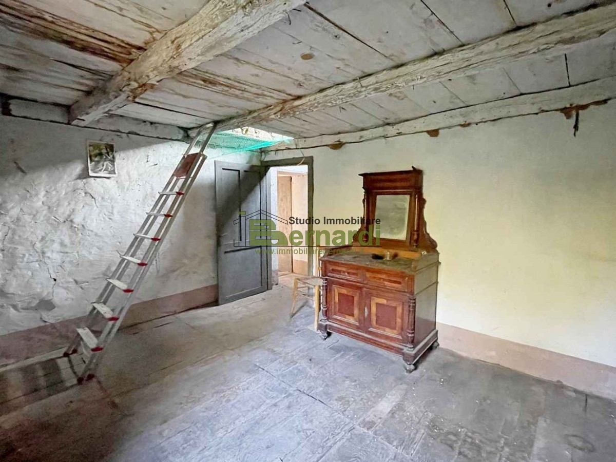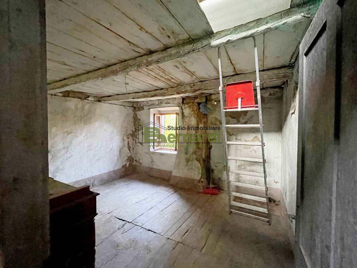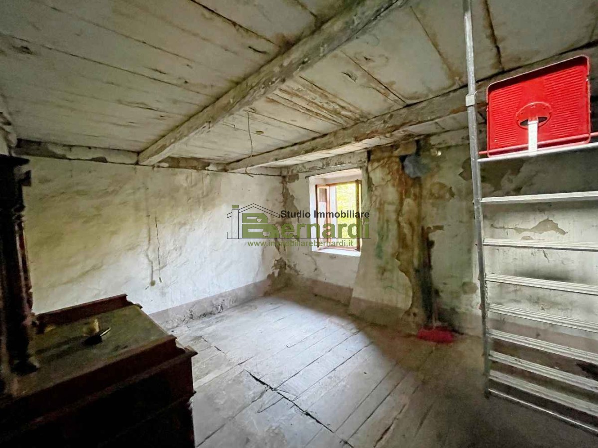 Al piano superiore, una scala in pietra ci conduce alla zona notte, anch'essa da rinnovare, che ospita attualmente una spaziosa camera da letto, un bagno finestrato con vasca e un'altra stanza, ora adibita a ripostiglio, che potrebbe diventare una seconda camerina, il tutto affacciato ad una meravigliosa vista sul verde circostante.