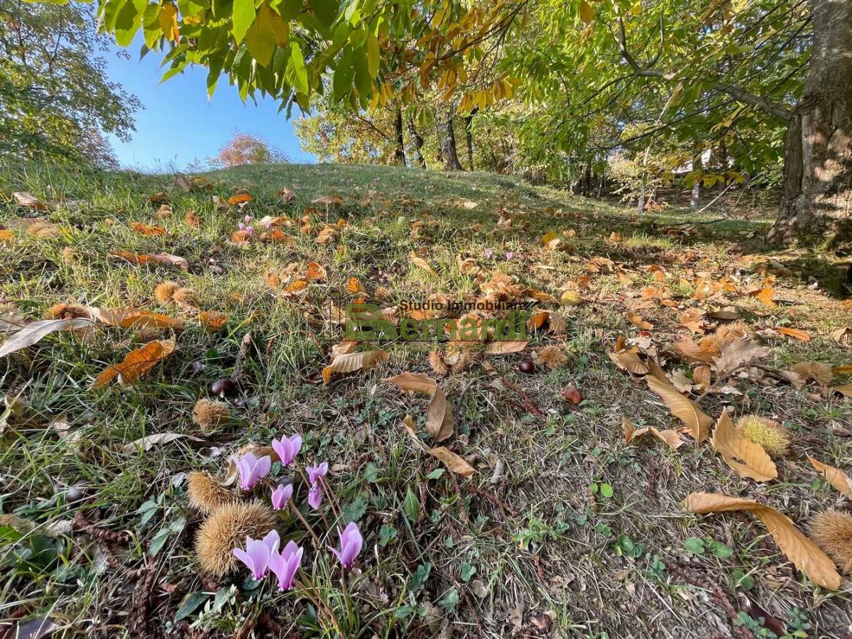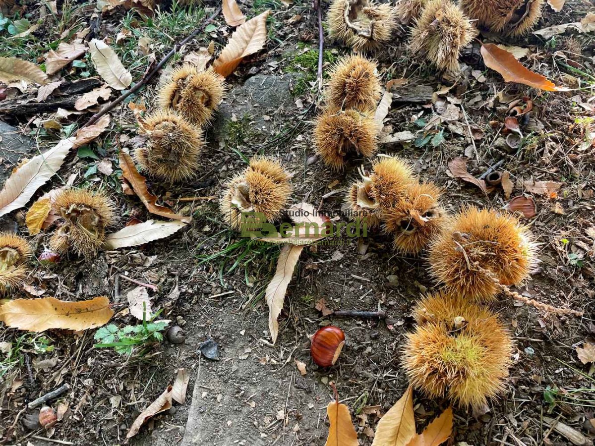 All’esterno, un ampio terreno di oltre mezzo ettaro fra seminativo e bosco, circondato da maestosi alberi secolari di castagno e di marrone che regalano ombra, profumi e, in autunno, perchè no, anche frutti pregiati e prelibatissimi da gustare.